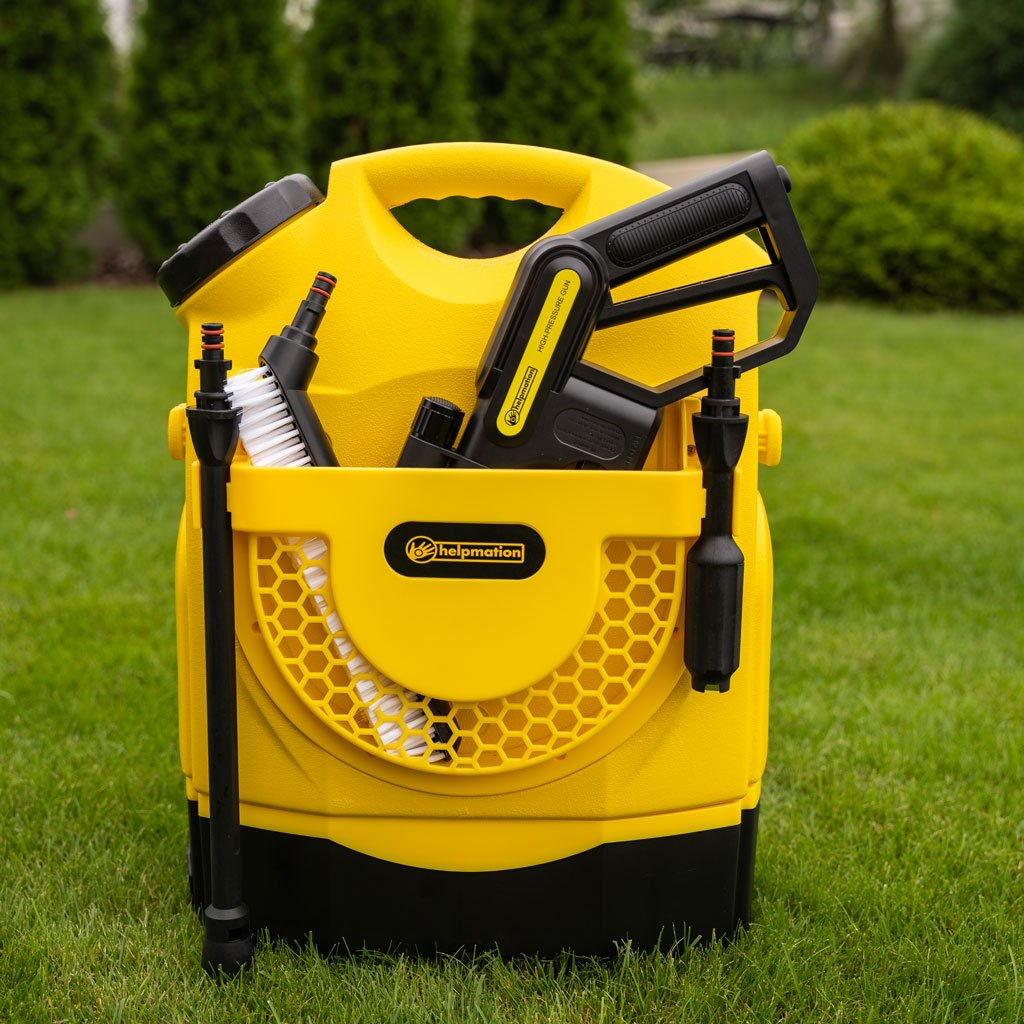 Přenosnou tlakovou myčku Helpmation využijete na zahradě, na sídlišti, na závodech, v kempu i na dovolené. Lehký a kompaktní tvar myčky je stvořen, abyste ji měli neustále po ruce, například v zavazadlovém prostoru automobilu. Přenosná myčka Helpmation zajistí velice účinné mytí nejen horských kol, motocyklu, automobilu, karavanu, lodě, zahradního nářadí či zahradního nábytku, ale najde využití například i na dovolené na velice rychlé omytí zablácených bot.