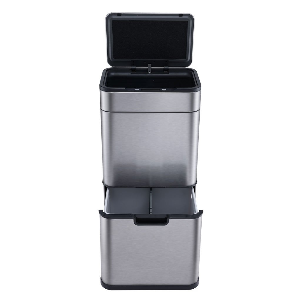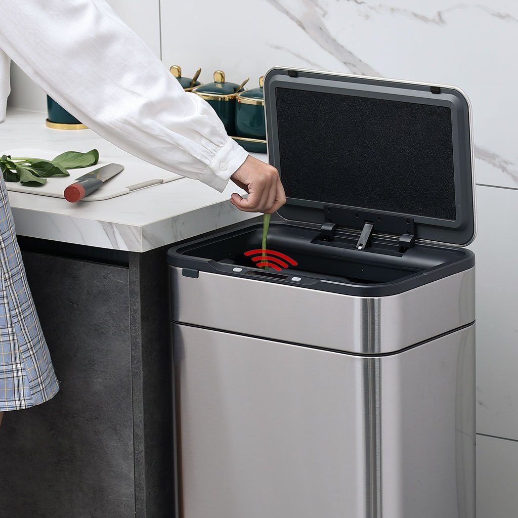 Na horní nádobě je umístěné bezdotykové víko s IR senzorem, takže vyhazování odpadků probíhá zcela bezdotykově. Přiblížením ruky do těsné blízkosti senzoru se víko samo otevře. Víko zůstane otevřené, dokud se ruka od senzoru neoddálí. Jakmile se od senzoru vzdálíte, víko se zavře do 5 sekund.
