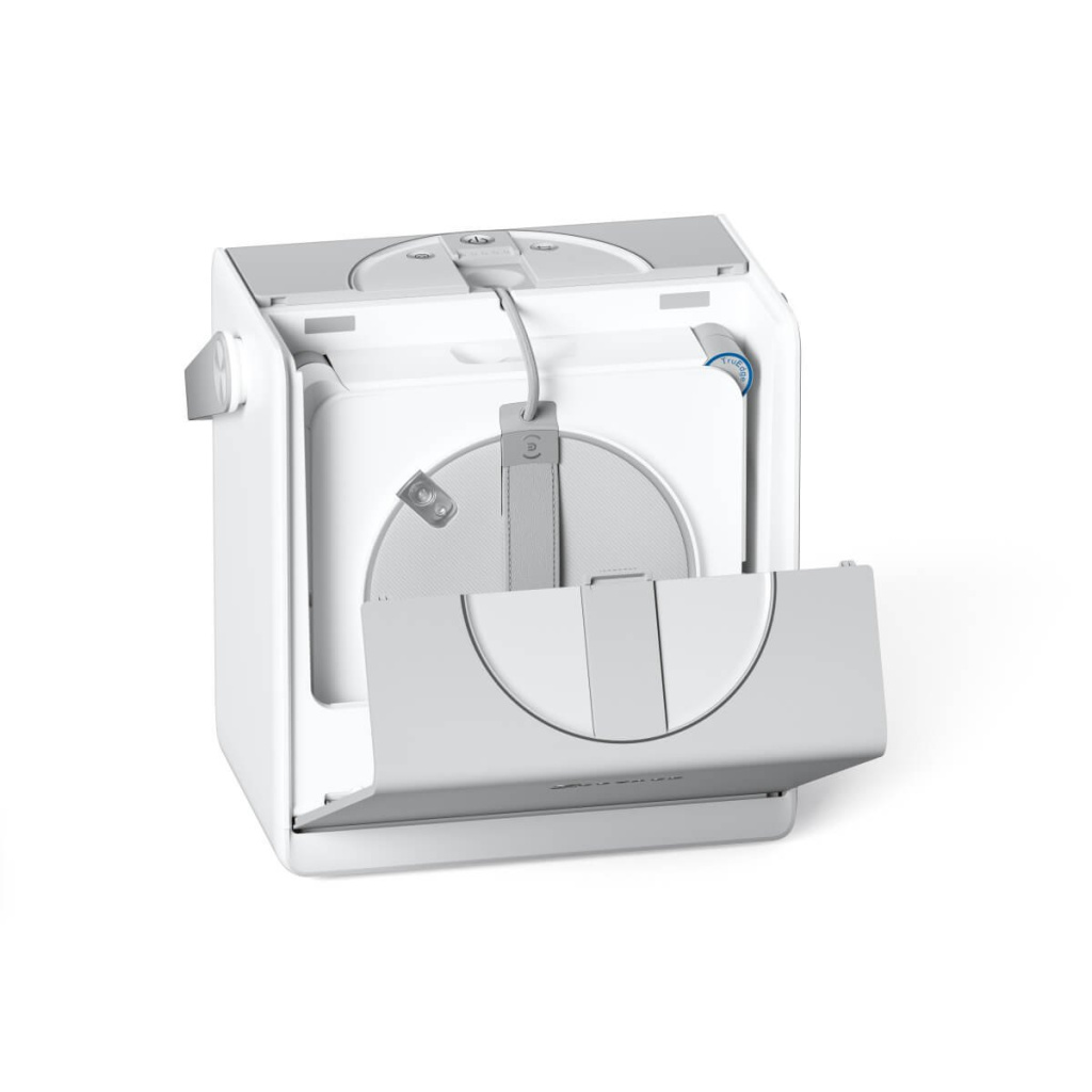 Přenosná stanice 6v1 robotického čističe oken ECOVACS WINBOT W2S OMNI je vybavena automatickým navíjením kombinovaného kabelu, čímž posouvá uskladnění po čištění na zcela novou úroveň. Manipulace s robotickým čističem oken nikdy nebyla nikdy jednodušší a organizovanější.